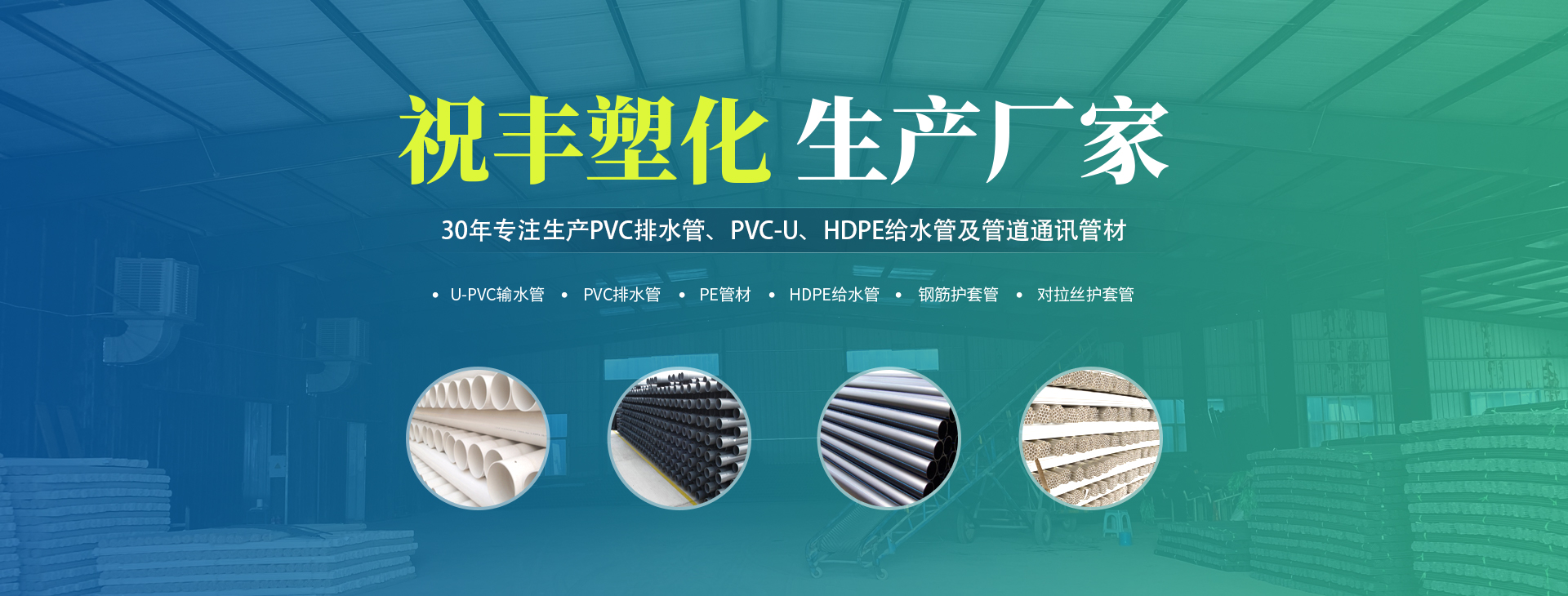 安陽市祝豐塑化有限公司坐落在滑縣工業園區,東臨大廣高速,西臨京珠高速,是鄭州、鶴壁、安陽、濮陽四個城市的輸紐,交通便利、環(huán)境優(yōu)美。 公司始建于八十年代,經過二十余年的艱辛創(chuàng)業,規(guī)模不斷壯大,由十多萬元資產的小廠,發(fā)展到現占地面積達一萬多平,建筑面積一萬平,資產2000多萬元管材生產企業。公司生產PVC-U、PVC排水管、HDPE給水管、鋼筋護套管管道通訊管材等產品,廣泛用于農田節(jié)水、高山引水、人畜用水、建筑、電力通訊等多種用途,品種齊全。為了滿足用戶需求,可承攬各種給水、節(jié)水、灌溉工程?!白XS塑化”憑借強勁的實力,優(yōu)良的管理水平。“以質量求生存,以信譽求發(fā)展”的原則全力以赴和大家共同塑造美好未來。..